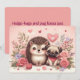 Gör någon glad på Alla Hjärtans Dag med detta oemotståndigt söta kort som visar en glad igelkott och en bedårande mops sittande mitt i en bukett rosor och blommor. Perfekt för djurälskare, vänner eller den speciella personen, det är ett roligt sätt att säga "Jag bryr mig".