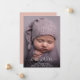 Älsklig sovande baby foto födelse tillkännagivande med skript namn överlägg, för flicka eller pojke. Använd bara denna mall för att lägga till ditt eget söta babys foto och anpassa med babys namn i den eleganta trendiga skript typografin. Mjuk blek lavendel foto med en mjuk rosafärgad mauve enfärgad bakgrund på baksidan av inbjudan.