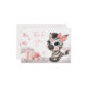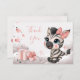Söt tack-kort med en söt liten zebra-hona som bär en söt rosa rosett med några kärlekshjärtan sittande på moln