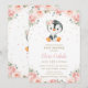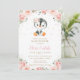 Älsklig Pingvin Rosenskär Blommig Flick Babyfirand Inbjudningar