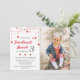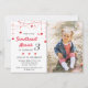 Söt röd födelseinbjudan perfekt för en babyflickas födelsedag. Matchande infogningar, skyltar, spel och dekorationer finns i vår Zazzle-butik.