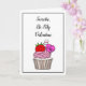 Alla hjärtans dag-kort med rosa cupcakes med hjärtan och godisstav.