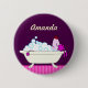 Den gulliga hunden blöter i en bubbelbad på denna älsklings- groomers namn klämmer fast. Görade randig rosor däckar och mörk bakgrund. Underbaren för hundgroomers - tillfoga ditt namn.