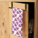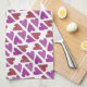 Kvalitets- handduk som dekoreras i ett mönster av röda och för lilor pappra hjärtor.