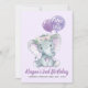 Gullig lavendelelefant med blommor och ballonger för din mest sweetest en födelsedag spara datera.