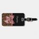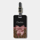 Resa i mode med denna stilfulla bruna märkre för bagage för pälsleopardtrycket med ett elegantt rosigt brunt band som binds in i en chic pilbåge. Personifiera denna moderna och flott djura tryckdesign, genom att tillfoga ditt namn. Den utskrivavna lägenheten avbildar, inte faktisk päls eller bandet.