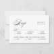 Detta enkla svarskort för svart och vit elegant i bröllop har en minimalistisk layout som kombinerar roligt, vismisk, klassvis skripttypografi och klassisk serif typsnitt i svart på en ren vit bakgrund för en modern men tidlös design med vintagens fläkt. Osa text skrivs i ett romantiskt handskrivet kalligrafteckensnitt med nyanser. Datumet är anpassade, och det finns tre alternativ för redigerbara måltider i grund till ge för dina gästers val. Svarskortets baksida är ett minsta solitt vitt. Du kan redigera texten i produktmallen för att anpassa den till ditt eget bröllop.