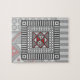 Den här koncentriska kvadraten har enkel geometrisk mönster i skuggor av grått och rött med färg i lagrar växlande när man byter från lodrät till vågrät.