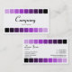 En modern affärs-/profilkortsmall för snyggt. Kantade överkant och grund med nio runda hörnstenar som går från ljusa till svarta lilor. Företagsuppgifter på framsidan med namn och kontaktuppgifter på baksidan.