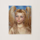 Den här fantasi-designen har ett nära inslag av en underbar ung fe med långa, blonda hår och delikat aprikot vingar. Hon är emot en fantasi himlar av blå moln och det finns en sprinkling av mejeridamm i förgrunden.