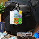 Winter, Spring, Summer, or Fall all you gotta do is call and I'll be there to play pickleball. Fun pickleball bag tag for yourself, your pickleball-loving friend, mom, dad, uncle, aunt, brother, sister, neighbor, grandpa, grandma, or work buddy who won't stop talking about pickleball. A colorful tree filled with pickleballs showing colors of the seasons with winter snowflakes, sunny spring skies, summer flowers, and pickleball pumpkins with pickleball paddles leaning against a tree.