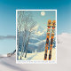 Hej från snöbergen i Alyeska Resort, Alaska, USA! Vi hoppas att du har en underbar skidsemester. Detta vykort har ett fantastiskt blått grått-bergslandskap med retro-skidbrädor i ett orange-stam mönster. Alla textfraser kan anpassas till kostym!
