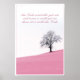 Am Ende wird alles gut sein und wenn es nicht gut ist, dann ist es nicht das Ende. Angelehnt en ein Zitat von Oskar Wilde. Einzelner Baum auf pinker Wiese mit blauem Himmel.