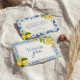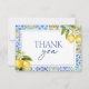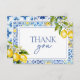 Detta tack, inspirerat av Amalfi Kusten charm, har vattenfärgscitroner, Medelhavsbrickan mönster och elegant blue typografi. Ett vackert sätt att skicka kärlek och tacksamhet efter firande.