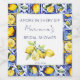 Amalfi Positano Vietnam Blue Majolica tiles citons möhippa tableware personlig vin etiketter, Medelhavstema blåvit och gult möhippa vin flaska etiketter