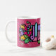 Den Amanda anpassningsbar målade kaffekoppen i älskvärd nyckfull stil. Målat för att likna målat glass i frodig vibrerande juvel tonar. Virvlar runt, krullning, hjärtor, polka dots och blommor. Toppen personligt och artsy.
