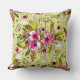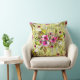 Amanda-Rosa Blommigt på Gult Grönt Rand Kudde
