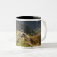 Amas och en överblick över Machu Picchu. Två-Tonad Mugg