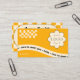 Ett retrosöt affärskort med orangegul Y2K-gult och checkers för funky. Helt redigerbart - lägg bara till din information och ditt besök! Perfekt för kreativ-studior, handgjorda butiker eller någon som säger "hej" i stil.