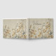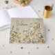 This guest book features an ethereal, meadow-inspired landscape rendered in a delicate watercolor style. Stems of wildflowers and clover-like foliage stretch upward against a warm linen-textured background, creating a tactile, fabric-like appearance.