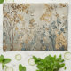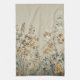 This kitchen towel features an ethereal, meadow-inspired landscape rendered in a delicate watercolor style. Stems of wildflowers and clover-like foliage stretch upward against a warm linen-textured background, creating a tactile, fabric-like appearance.
