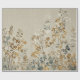 This gift wrap features an ethereal, meadow-inspired landscape rendered in a delicate watercolor style. Stems of wildflowers and clover-like foliage stretch upward against a warm linen-textured background, creating a tactile, fabric-like appearance.