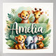 Vacker daghemsdekanter med charmerande baby-safari-djur och tropiska löv med namn Amelia på framträdande plats. Skapar en varm, äventyrlig perfekt för varje barns rum. Högkvalitativt redo för ramning. Tillgängliga anpassade namn - meddela mig om du vill ha mer information!