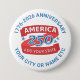 Here is a chance to create your own custom and totally unique America 250 merchandise in the form of these red, white and blue button pins. Add your state to the red ribbon banner design then personalize the arched text at the top and bottom in a blue font for a truly custom button. Sure to be collectible among friends, family and co-workers, these round pinback buttons are a fun way to showcase the semiquincentennial 250th anniversary of the founding of the USA.