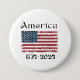 America Flag 1776 to 2026 USA 250th Anniversary Button. A classic American design created to commemorate the nation’s 250th anniversary, featuring a vintage-style American flag with a softly distressed texture and the historic dates 1776–2026. Simple, balanced typography and a clean layout give this piece a timeless Americana feel that’s is simple and yet impactful.