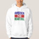 Patriotic typography design featuring the words "America The Beautiful" with star and topographical map textures.