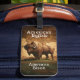 En målning av en amerikansk bison som står på ett grassligt fält med en vintage karta i bakgrunden.