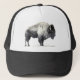 Ett fotografi av en amerikansk Bison eller Buffalo i svart och vitt på vintagen.