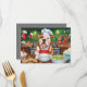 Fånga helgdag glädje att baka med den här härliga scenen med en glad kock omgiven av julgransar och festliga dekorationer. En hjärteberande firande av årstidens sötaste traditioner.