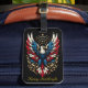 En illustration av en baldörn med vingarna breda ut sig, med den amerikanska flaggans färger.