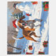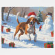 En helgdag med hjärtslitande hund i snö, som bär en julhatt och omges av färgfulla presentlådor. I bakgrunden bygger barn snögubbe bredvid ett Julgran som är täckt av snö och skapar en glatt vinter under. Perfekt för att sprida helgdag och fånga julens magi.