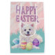 En livlig påskscen med en bedårande hund bland en samling livfulla påskägg. Den lekfulla hunden tillför charm till den festliga atmosfären, omgiven av en mängd färgglada ägg med fantasifulla mönster.