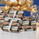 A homemade strawberry pie with an American-style crust, perfectly placed on a rustic wooden table by the farmhouse window, pays tribute to the spirit of patriotism