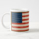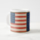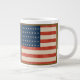 För törstig och fri! På vardera sidan av detta jumbo mugg är en stiliserad version av det amerikanska Staternas flagga (ett konstnärligt tillstånd som är upptaget på ett antal stjärnor). Mellan dem finns en djup marin blå banderoll med ord "FREEDOM" som löper lodrätt ned. Koordinerar med HoMeArts "American Flagga" Series of dishes, bord linens, klockor och mycket mer!