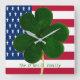 American Flagga Irish Shamrock Klöver St. Patrick Fyrkantig Klocka