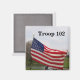 Amerikansk Flagga blåser in i vinden under vår camping.