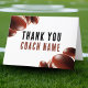 Amerikanska fotbollscachen Namn tackar dig. Med det här anpassadet med fotboll i bollar kan du visa tacksamhet för den hängivenhet, det ledarskap och den motivation som din tränare tillhandahåller. Anpassa med din namn och tackkort inuti kortet. Ett underbart kort för en fotbollsbuss!