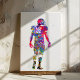 Vibrant watercolor artwork portraying a male American football player in full gear. The expressive paint splashes and rich colors convey power and motion, making this stretched canvas print a bold addition to any modern or sports-themed interior space.