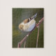 Ett foto av en amerikansk Goldfinch på en gren i en vinterträdgård.