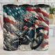 This dynamic artwork captures a motocross rider in patriotic gear, mid-air against a vibrant, waving American flag, with smaller flags trailing behind. It's an explosive celebration of speed, freedom, and national pride, perfect for motocross enthusiasts, veterans, or anyone who loves bold American-themed action art for their home or garage.