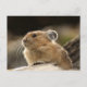 Foto av en amerikansk Pika med artinformation på baksidan.