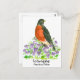 Ett postkort som dekoreras med en beredningsstöld i ett plåster av trävioletta söt lila som illustreras med bläck och vattenfärg. Inspinerad av den statliga fågeln och statsblomman Wisconsin. Du kan redigera eller ta bort texten efter behov.