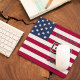 Enhance your workspace with this high-quality mousepad featuring a bold "Team USA" soccer theme. This durable desk accessory provides a smooth surface for precise tracking while showcasing your national pride with a vibrant stars and stripes background. The design is fully personalizable with a custom name and jersey number, both featuring a crisp white outline to ensure they pop against the red and white stripes. Complete with a sharp soccer silhouette and "USA!" typography, it is a functional and spirited gift for any athlete or fan.