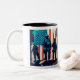 En digital målning av amerikanska soldater med den amerikanska flagga. Tvåtonig Mugg, 11 oz