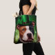 American Stafford hund i St. Patrick's Day Tygkasse