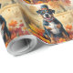 En vattenfärgsmålning stil av ett muntert sitta i hund i en hög av pulserande höst löv, omgiven av små pumpor och spridda hörn. Hund bär lite pilgrimhatt och beams med glädje, och fångade Thanksgivingens anda. I bakgrunden skapar mjuk skörd fält och träd med gyllene hud en fredlig landskapsambians. Struktur och varma, nedsmutsade hösttonar ge är en mysigt, nostalgisk perfekt för att fira säsongens skönhet.